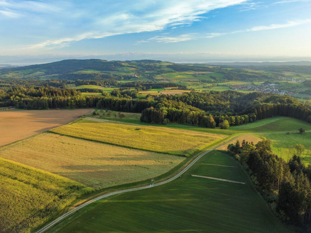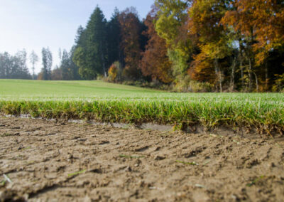 Im beschaulichen Deggenhausertal, im Hinterland des Bodensees, kultivieren wir unseren Rollrasen auf heimischem Boden mit gleichmäßiger, dichter Grasnarbe. Durch sorgfältiges Düngen, Wässern und Mähen bleiben unsere Gräser gesund, frei von Moos und fremden Pflanzen.