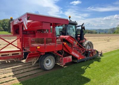 Die 12 Monate lang kultivierte Rasensode wird mit einer Schälmaschine geschält und aufgerollt. Unsere Bahnen erreichen somit eine Größe von 0,4 m x 2,5 m, ca. 2 cm Sodenstärke und haben ca. ein Gewicht je nach Witterung von ca. 25 kg / m² Dies sorgt für einen hochwertigen Rollrasen, der schnell und unkompliziert in Ihrem Garten Platz findet.